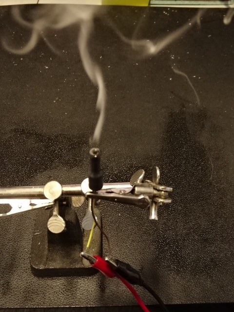 A little note about smoke oil... less is more! Don't be tempted to pour as much oil in as you can. It will cool the heating element and not work properly. Only put in a tiny amount at a time (10 ml should last you ages!) and you'll find you actually get more smoke.